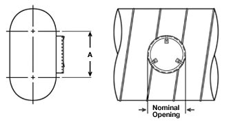 This oval door is designed for easy installation on round, flat oval, or rectangular duct. It is constructed of an outer door connected to an inner plate by spring-loaded carriage bolts. Once the inner plate has been inserted in the duct opening, the carriage bolts can be tightened by turning the hand knobs.
